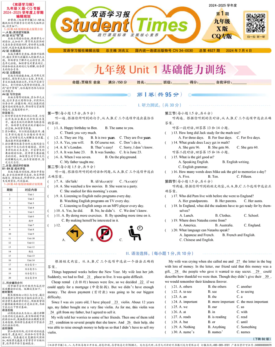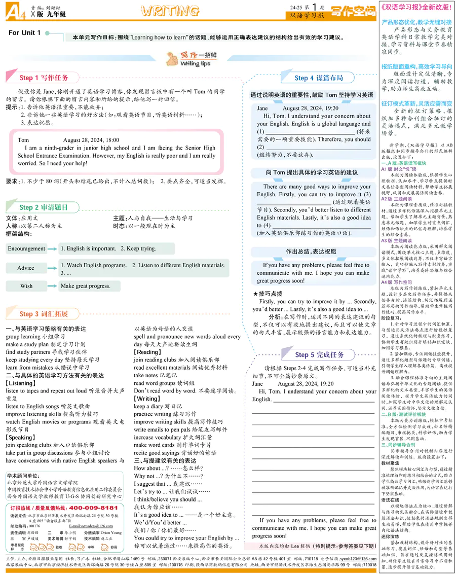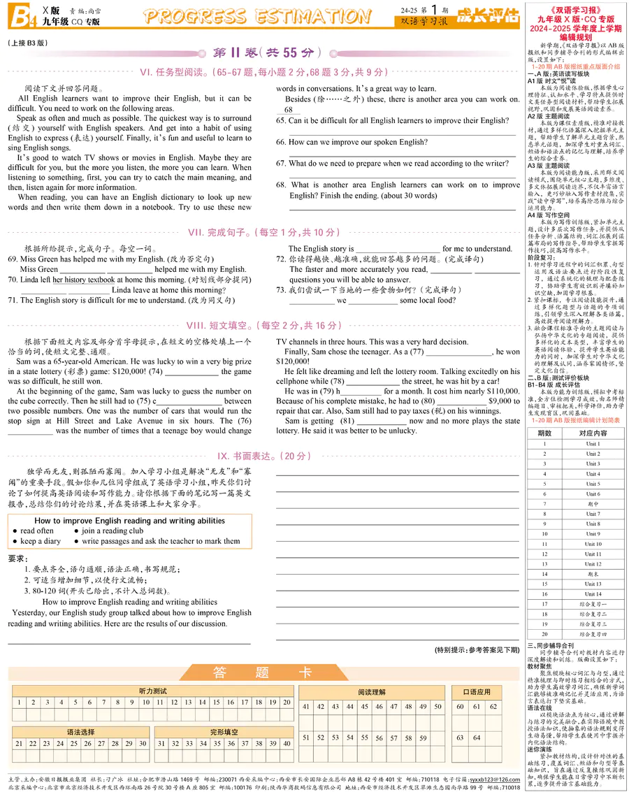 初中英语样报 九年级 X版CQ专版 第1期