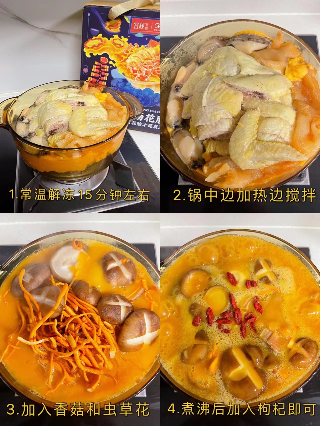 今天的菜都是平均10分钟就可以搞定啦~官栈即食花胶鸡竟然这么好吃!!!食材丰富,汤汁浓郁~花胶软糯一点也不腥~超级大块!鲍鱼Q弹~鸡肉鲜嫩~直接先喝了两碗汤~主要是!也太省时省力了