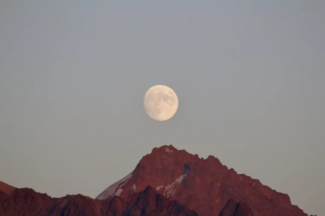 深邃的天空中一轮孤月高挂山巅,洒下清冷微光。黑夜如同老去的白天,有种令人敬畏的美。前一刻还在紧张焦虑,这一刻却感受到无比的宁静。我们生存的空间常常是瞬息万变,有种不真实的虚幻,似梦非梦。世界如此神秘,因为完全超出人的掌控,你不知道明天和意外哪个先到。你不知道曾经熟悉的一草一木,转个身是否还在。唯一不变的是变化,那么,到底还有什么事值得我们苦苦执着?与山川河流比肩而立,将自己融入无边时空,感受这一刻的刹那永恒。