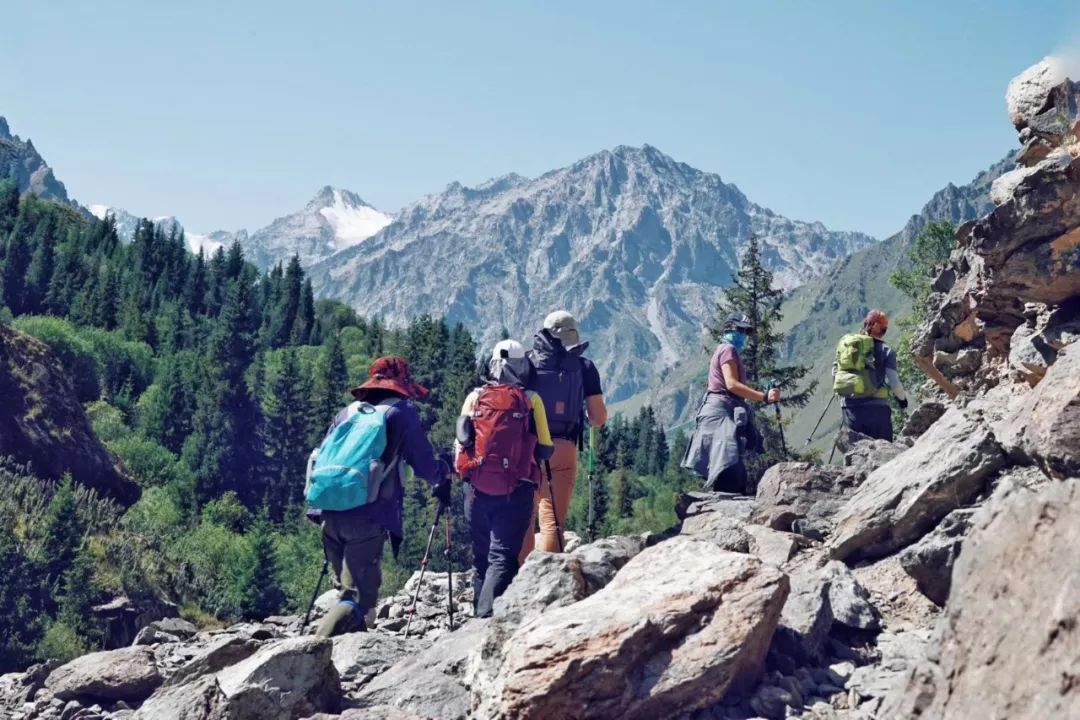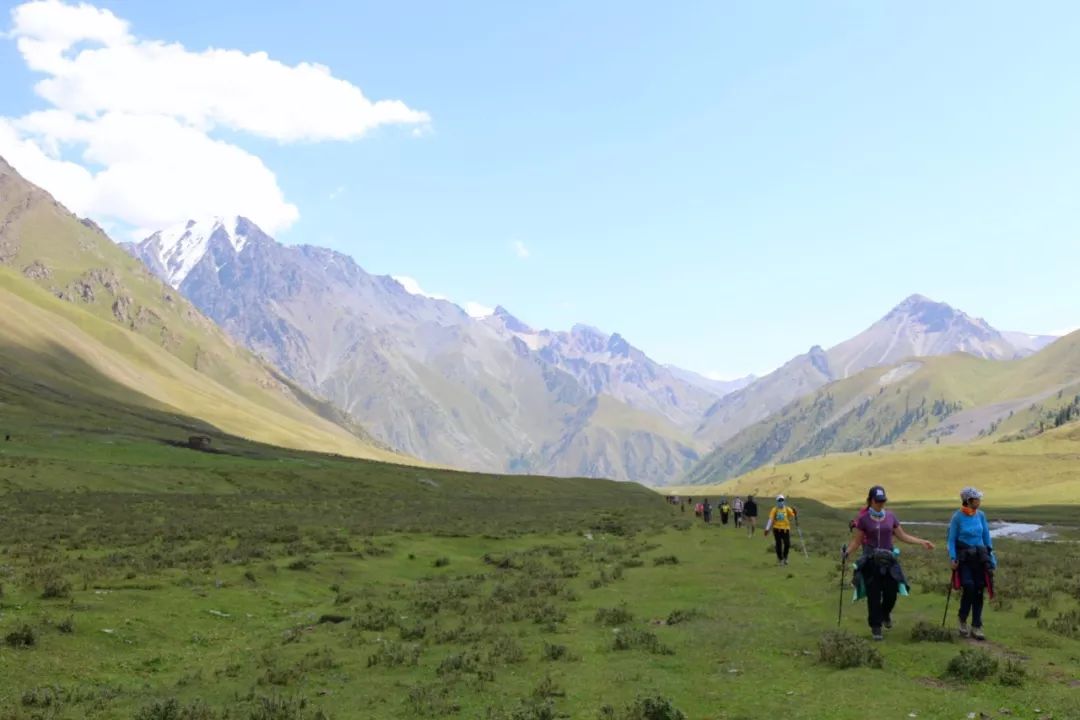 吃过早餐,依旧是9点出发。虽然领队叮嘱大家不要埋怨小D,还是会有人忍不住谆谆教导小D两句,而小D则很诚恳地一遍遍道歉,是个懂事的好孩子。天山是亚洲中部的一条大山脉,横贯中国新疆的西部,西端深入哈萨克斯坦,长约2500公里。天山山脉由三列大致平行的山岭组成,其中北天山有阿拉套山、婆罗科努山和依连哈比尔尕山;中天山有乌孙山、那拉提山和额尔宾山;南天山有科克沙勒山、哈尔克他乌山、科克铁克山和霍拉山;东天山有博格达山、巴里坤山和喀尔力克山等。在天山山系中,海拔在5000米以上的山峰大约有数十座,除最高峰托木尔峰外,主要还有中哈界峰汗腾格里峰、博格达峰、瓦斯基配卡维里山等。天山主要河流有楚河、锡尔河、伊犁河等。