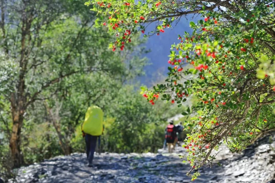 接下来进入山里的五天,即将告别所谓的文明世界,没有旅馆、商店,手机没有信号,真可谓风餐露宿。大家要自带帐篷,好在帐篷和重装有马队运送,我们只需负重一个双肩包,包里至少有领队要求的五样东西:水、路餐、头灯、雨衣以及保暖外衣。
