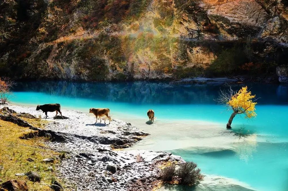 今天行程安排得不太紧,早上留出给大家拍天湖的时间。夕阳西下与朝霞初升是一天中最美的时刻,如同生命的早晚期,是不是可以理解老年与儿童都应该是美好的,一个是经历风雨后的返璞归真,另一个是不谙世事的纯洁无瑕。其实,一个人心中有爱与光,那么无论在哪儿,无论什么年岁,都应该是温暖与美好的。从昨天开始,能遥望到远处山头上的白雪。随着向西的推进,画面从一开始的水墨山水,渐行渐变,大自然仿若一位杰出艺术家,这里添些鹅黄、深褐,那里一抹嫩绿、深青,一笔笔挥洒渲染。行至此刻,眼前终于形成一幅色彩饱和的山水图画,满含深情。