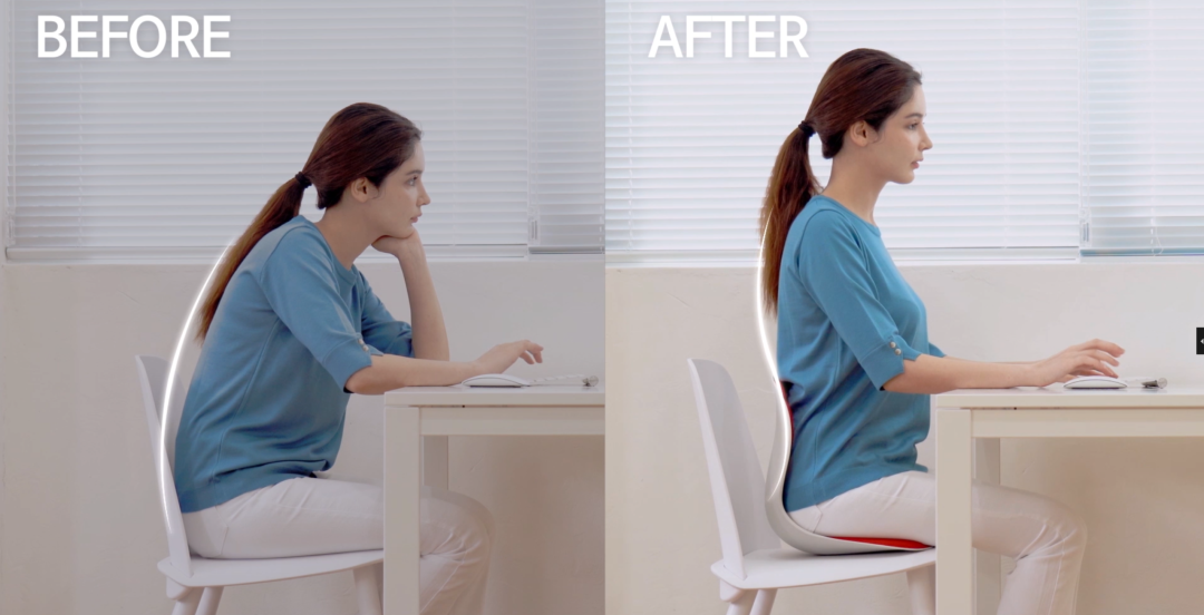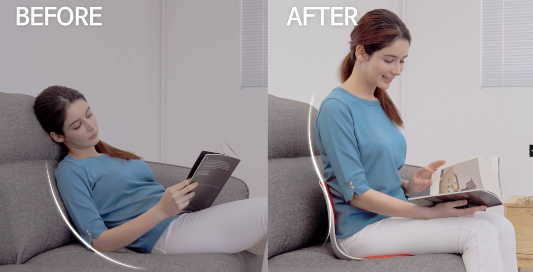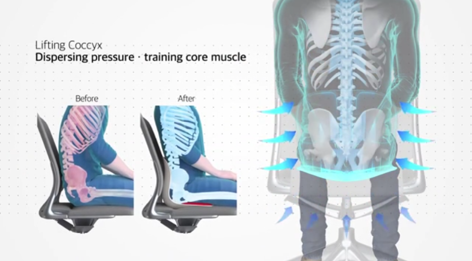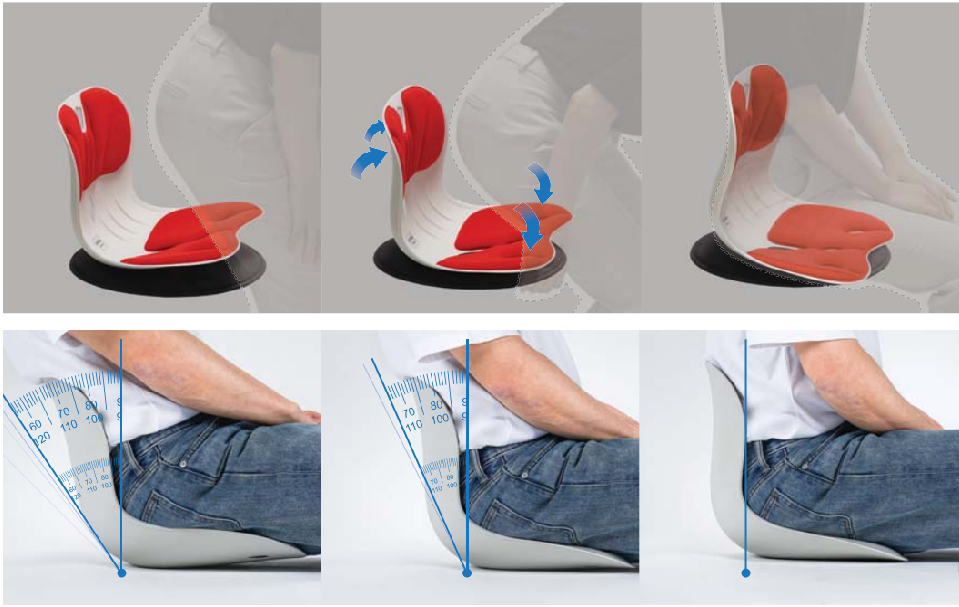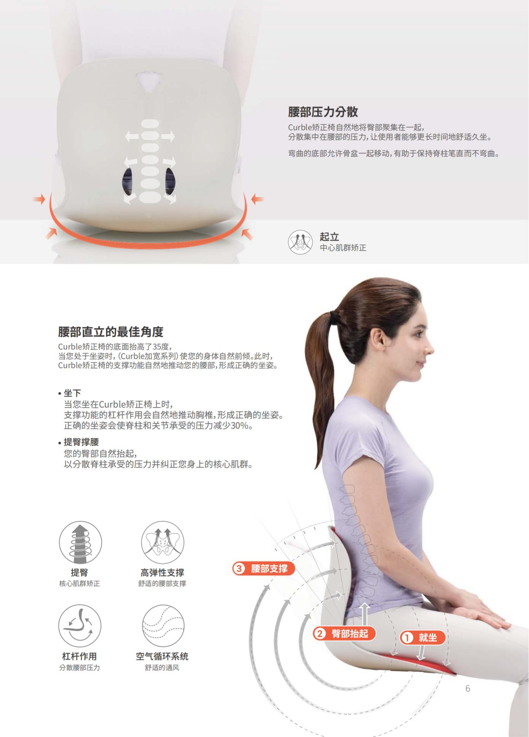 借助杠杆运动自然地提升腰椎,矫正椅的支撑根据用户的体重稳定、舒适地支持用户的腰部