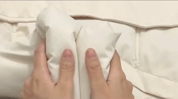 对着缝线处使劲拍打揉搓,也没有发现跑绒问题。