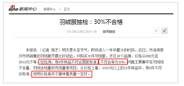 很多羽绒服外头看着好看,实际内里填充的都是劣质、便宜的绒料。