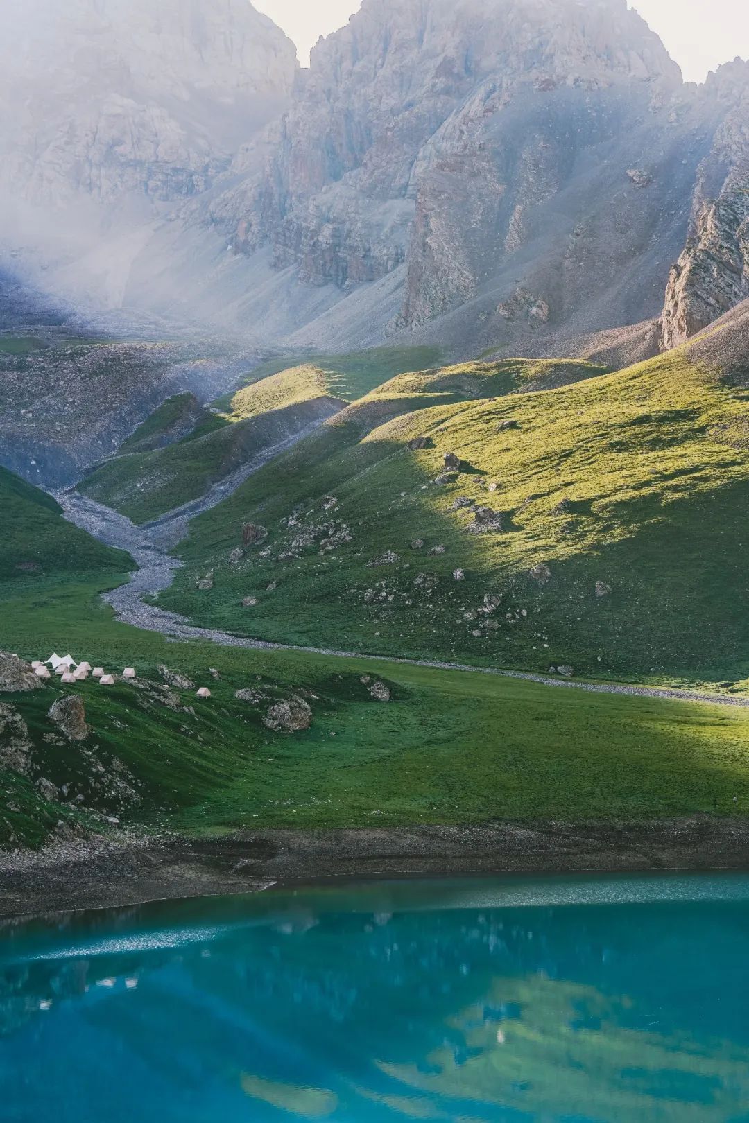 天堂虽远,但不是遥不可及天堂湖——即阿克库勒湖,乌孙古道的标志,缀在天山上的一颗明珠。无需多言,每个人来此者皆被震撼。只需一眼,便彻底沉沦,不可自拔。