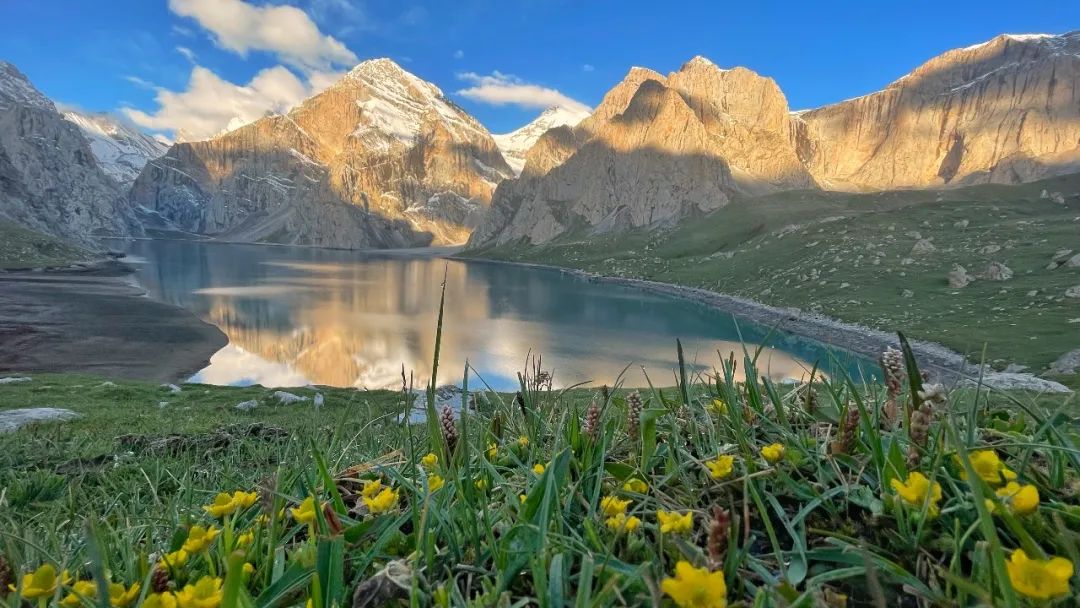 眼前棱角分明的山脊,一望无际的连绵草坪,星星点点的小黄花点缀其中,在每一位路过的人们心中刻入深深的烙印。