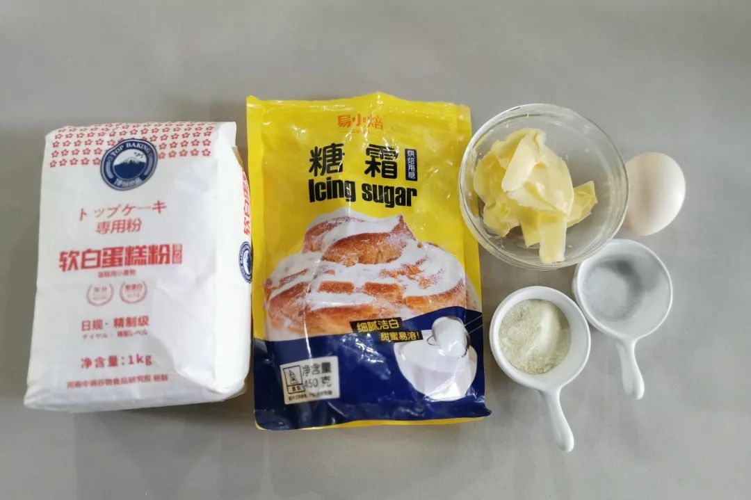糖粉 60g,盐1.5g,鸡蛋 30g,奶粉 6g