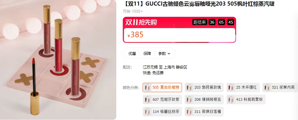 作为大牌界的翘楚,Gucci唇釉的官网价格接近400元一支。