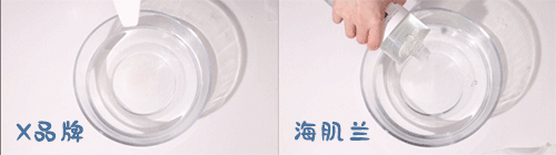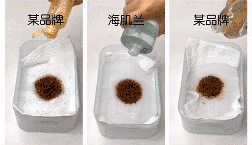 普通海绵里依然布满了黑点,而海肌兰洗过之后,内衣反而像是新买的一样。