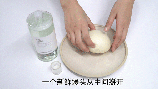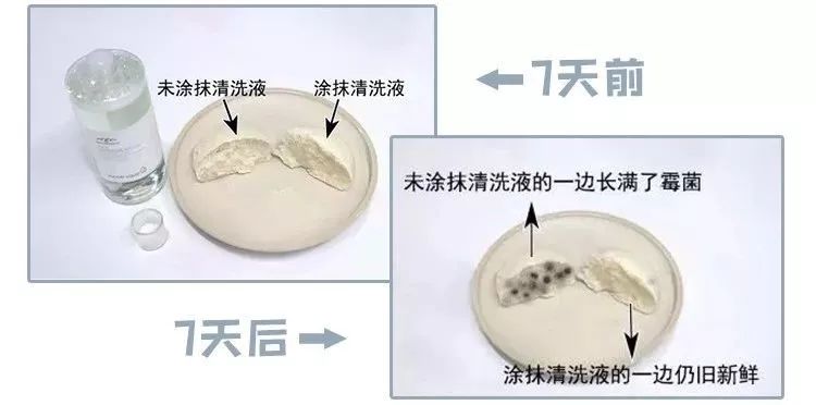 把掰开的馒头,一边涂上清洁液,一边不涂。