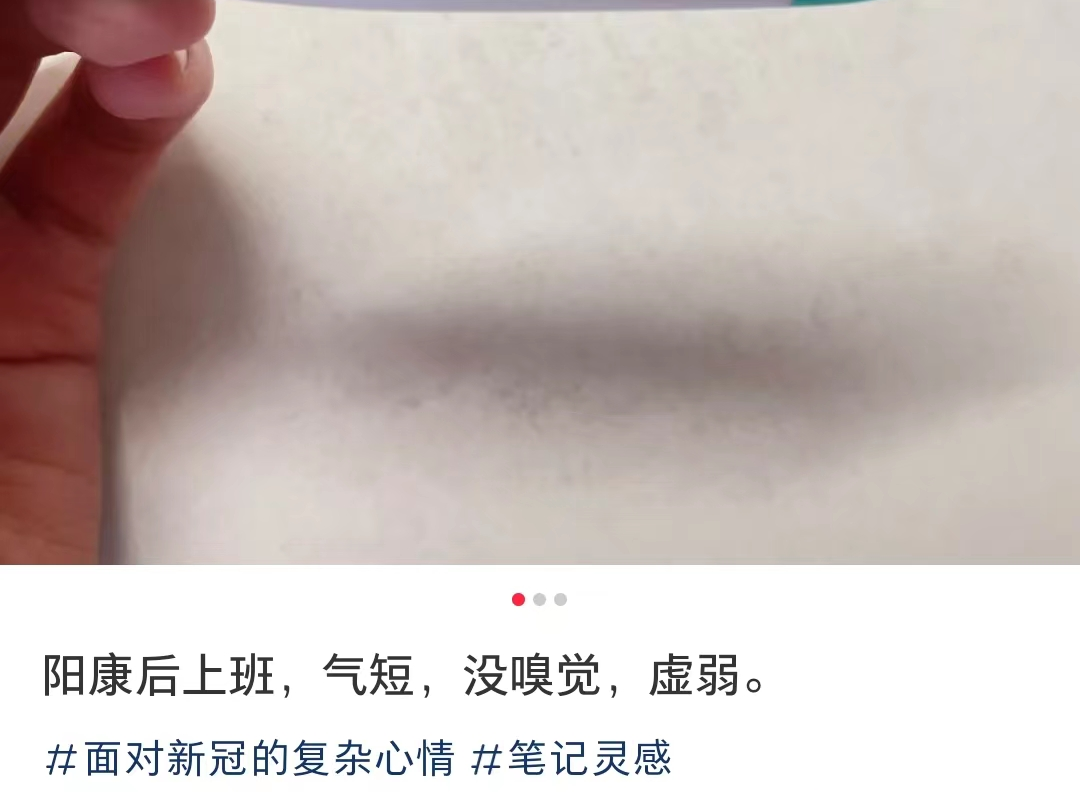 这不小红书上就有人说“阳康后上班,气短,没嗅觉,虚弱”。