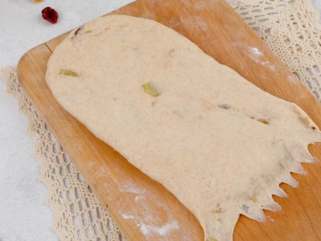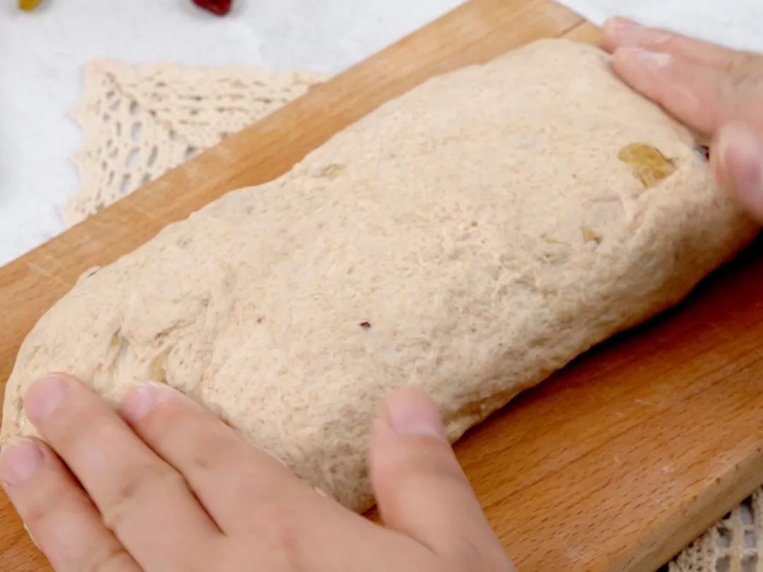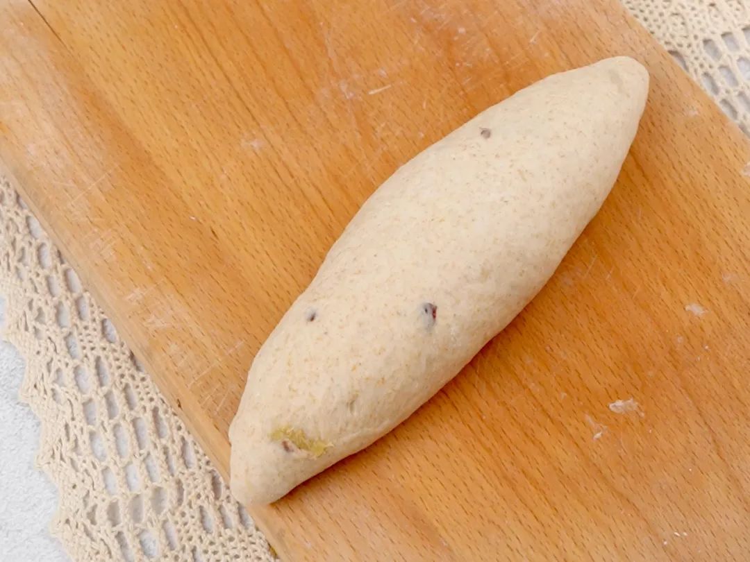 5.整理成长橄榄形状,直接放入空气炸锅里面,发酵至原体积的1.5倍大左右