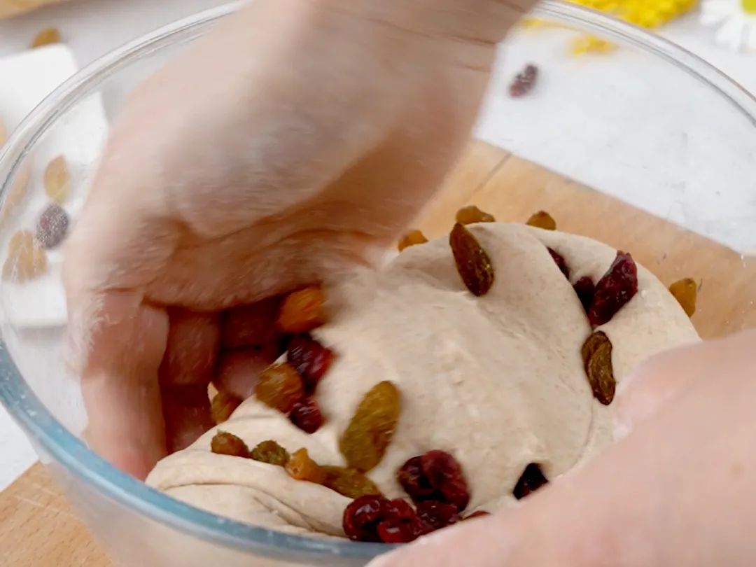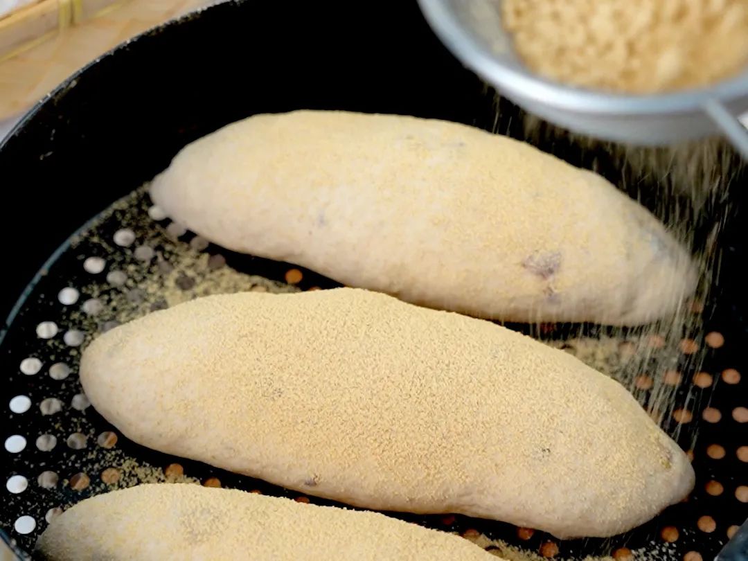 6.预热空气炸锅3min 左右,表面筛粉、割包整形,200℃/20min ,面包就做好了