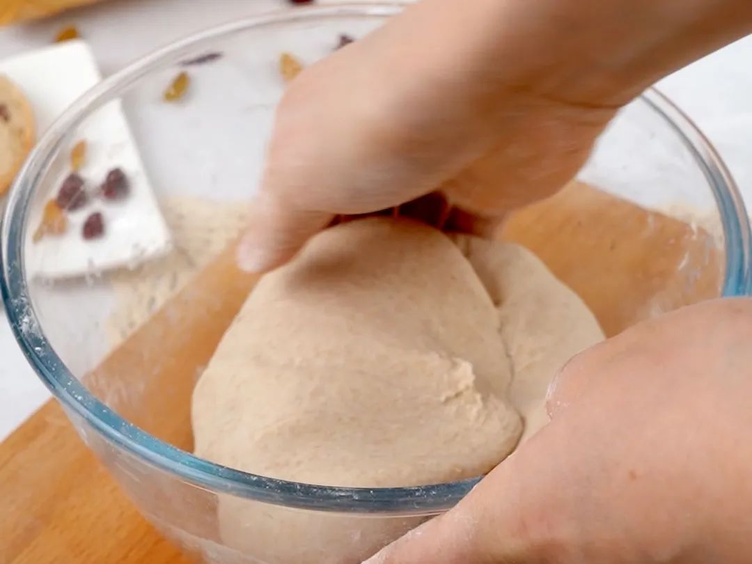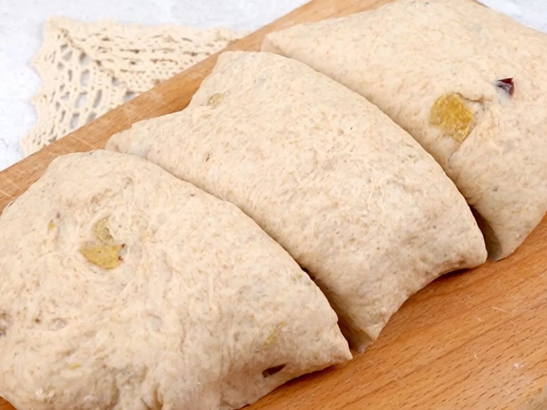 3.发酵至原体积的2倍大左右,平均分成3份,揉圆,松弛