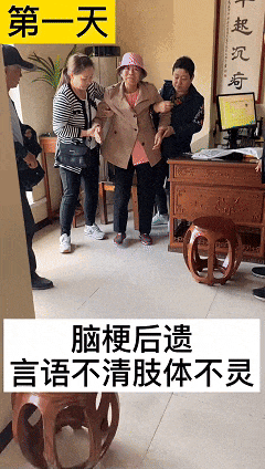 王大娘因病导致语言障碍,甚至需要两个人搀扶着才能走几步路。