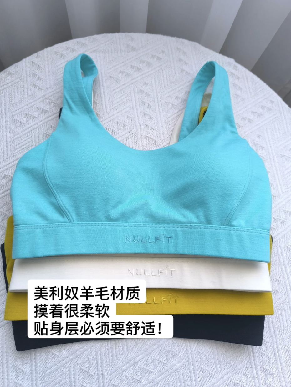1️⃣“ NULLFIT这款美利奴羊毛户外文胸,从面料到设计都展现出专业的运动属性,面料选择上,15.5μm美利奴羊毛是核心优势,这种细度的羊毛既能保证面料的柔软度,又具备足够的韧性,不会轻易勾丝或破损。实际穿着中,面料的透气孔能快速排出运动时产生的热气,避免闷热感,而速干性能则让内衣在出汗后迅速恢复干爽,即使在潮湿的户外环境中,也能减少肌肤与面料的黏连感,提升穿着舒适度。