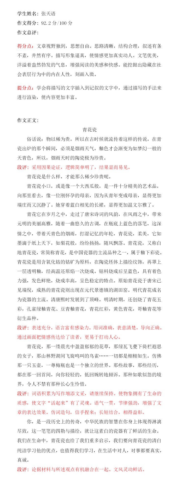 我是孩子的父亲,我是一名古玩瓷器爱好者,尤其喜欢如梦幻一般的天青色的青花瓷,我喜欢查看相关资料并学习有时还会带孩子去博物馆参观,或许就是这种耳濡目染让孩子喜欢青花瓷,也就能把文章写得如此美妙,我相信兴趣是最好的老师,也希望她能通过自己的努力变得更加强大。
