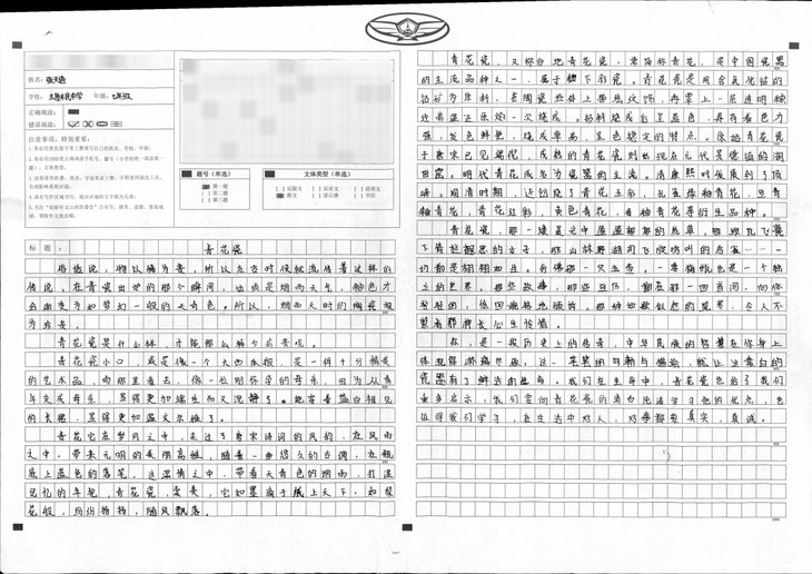我的爸爸是一位古玩爱好者,我小时候的玩具就是罐,盘之类的瓷器。当我看到文章的题目时就被深深吸引了,我决定用我的笔写一写青花瓷,其实每一件青花瓷作品的形成就如不断茁壮成长的的我们,要一道道的工序才能完成,要一次次的修改,才能完美。天青色的烟雨是我非常喜欢的意境,它让我想起手撑油纸伞行走在石板路上,欣赏着有着无限生命力的青花瓷。