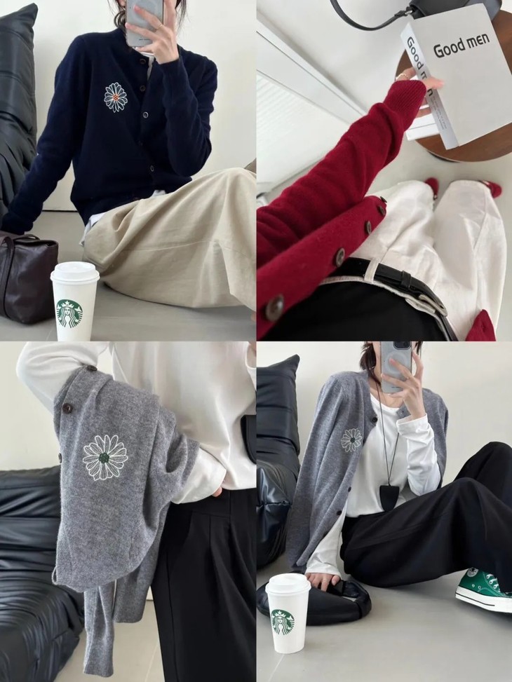 气质百搭色:车厘子红,花灰色,藏青色。绝对不会撞色的小心机,减龄又时尚~