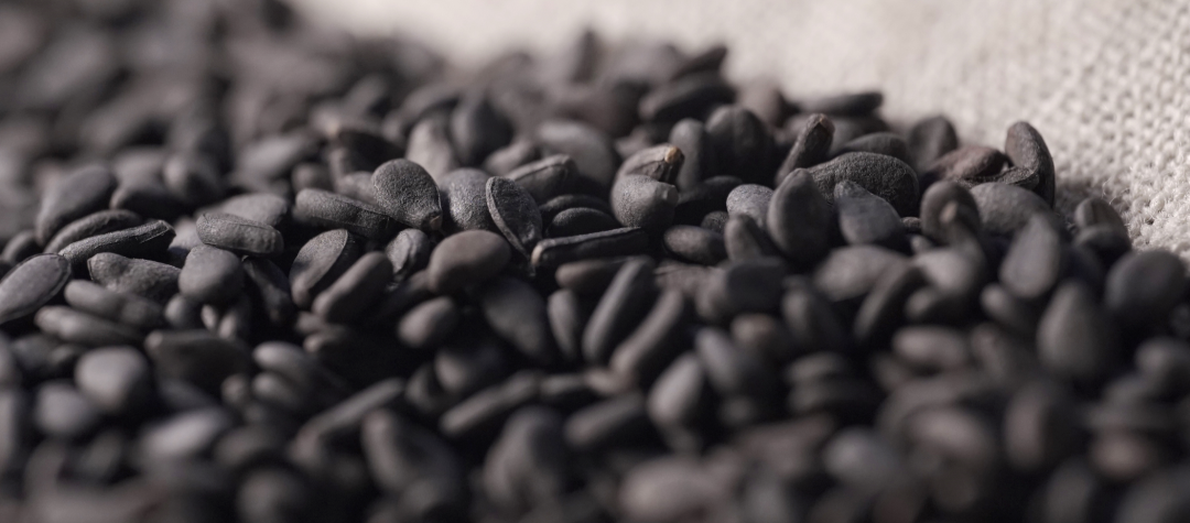 △ 生芝麻和九蒸九晒去皮后芝麻对比