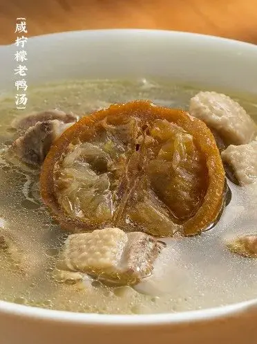 【咸柠老鸭汤🦆】- 鸭肉焯水,并去掉血沫;- 将焯好水的鸭肉与姜片同煮60分钟;- 关火后加入咸柠檬皮即可。【咸柠凉拌万物🥗】- 凉拌菜焯水后放入、柠檬叶丝、葱白段、洋葱丝、红葱头丝、小米椒圈、海鲜汁、咸柠檬、加入糖、盐、香菜碎搅拌均匀。⬇️点击下方购买⬇️【点击购买】腌足一年的咸柠檬不定时直播送礼品,更多纪录片同款好物请关注↓【老广的味道】视频号【老广的味道】抖音号