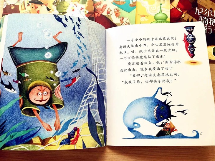 比如,《尼尔斯骑鹅旅行记》是世界上唯一一部获得诺贝尔文学奖的童话故事,整部作品充满了奇妙的想象力,但由于原著文字过多,很多家长和孩子都无法真正读完,而这套精编版的绘本故事,就特别适合作为入门和过渡。