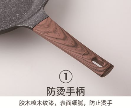 采用仿荷叶不粘原理,实现防水防油的效果,炒菜不粘、清洗方便省力。