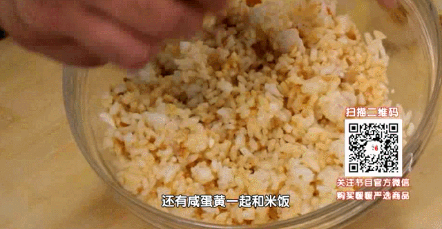 制作完成:蛋液渐渐凝固时,放入炒好的咸蛋黄炒饭,稍加烧制,裹成蛋卷即可!