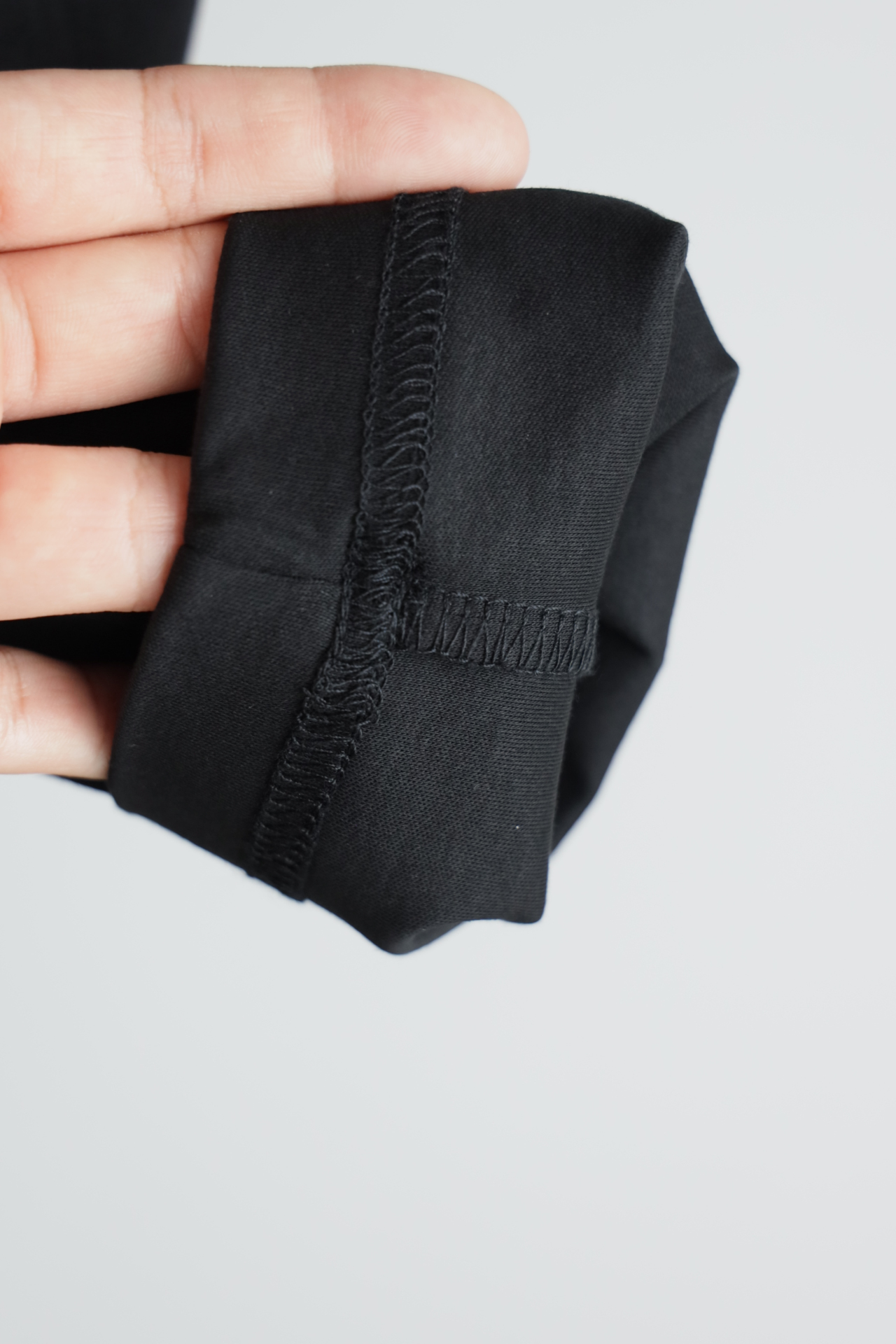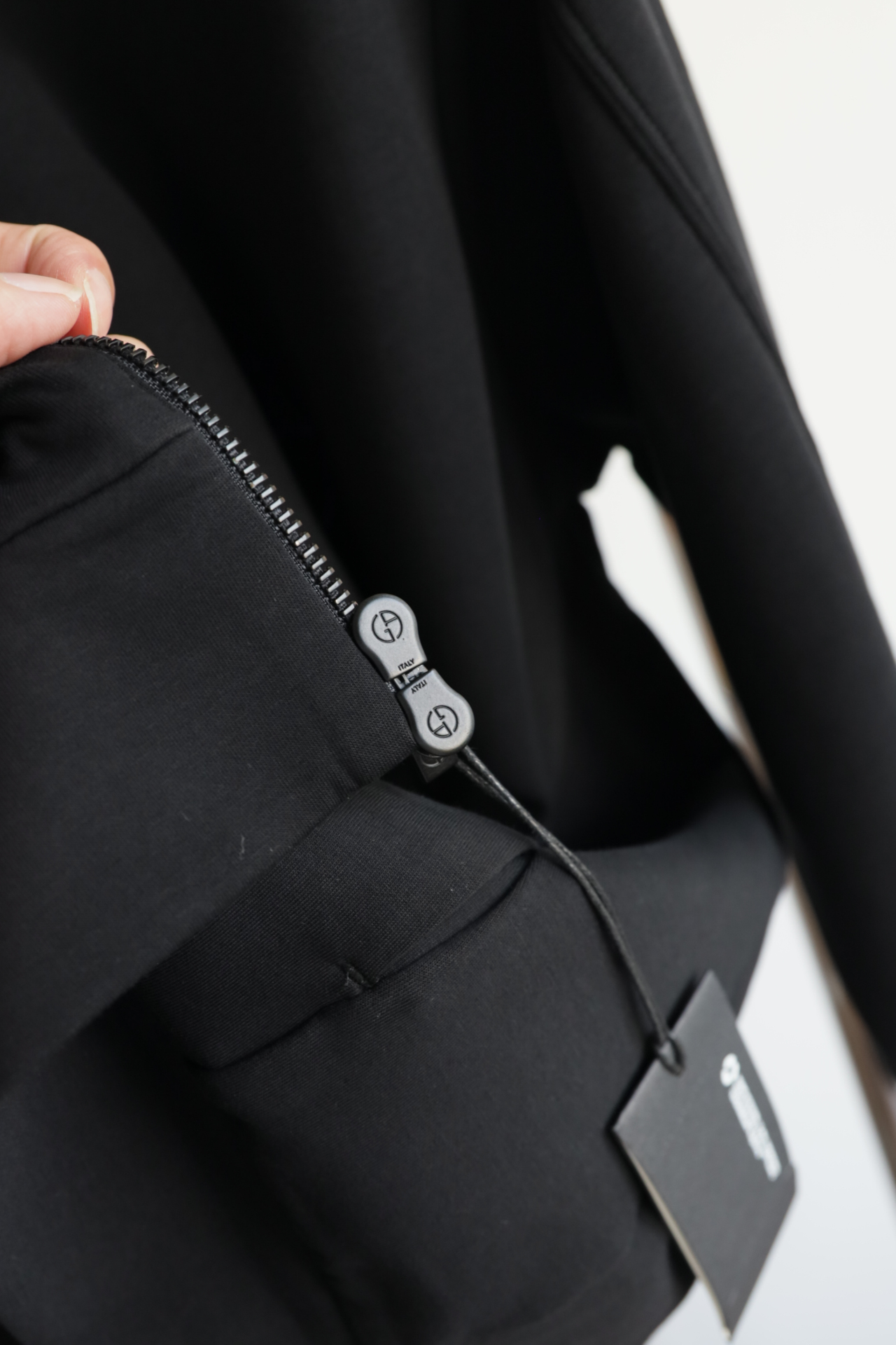 直筒版型,剪裁线条干净顺畅,衣身松量适中,百搭黑色