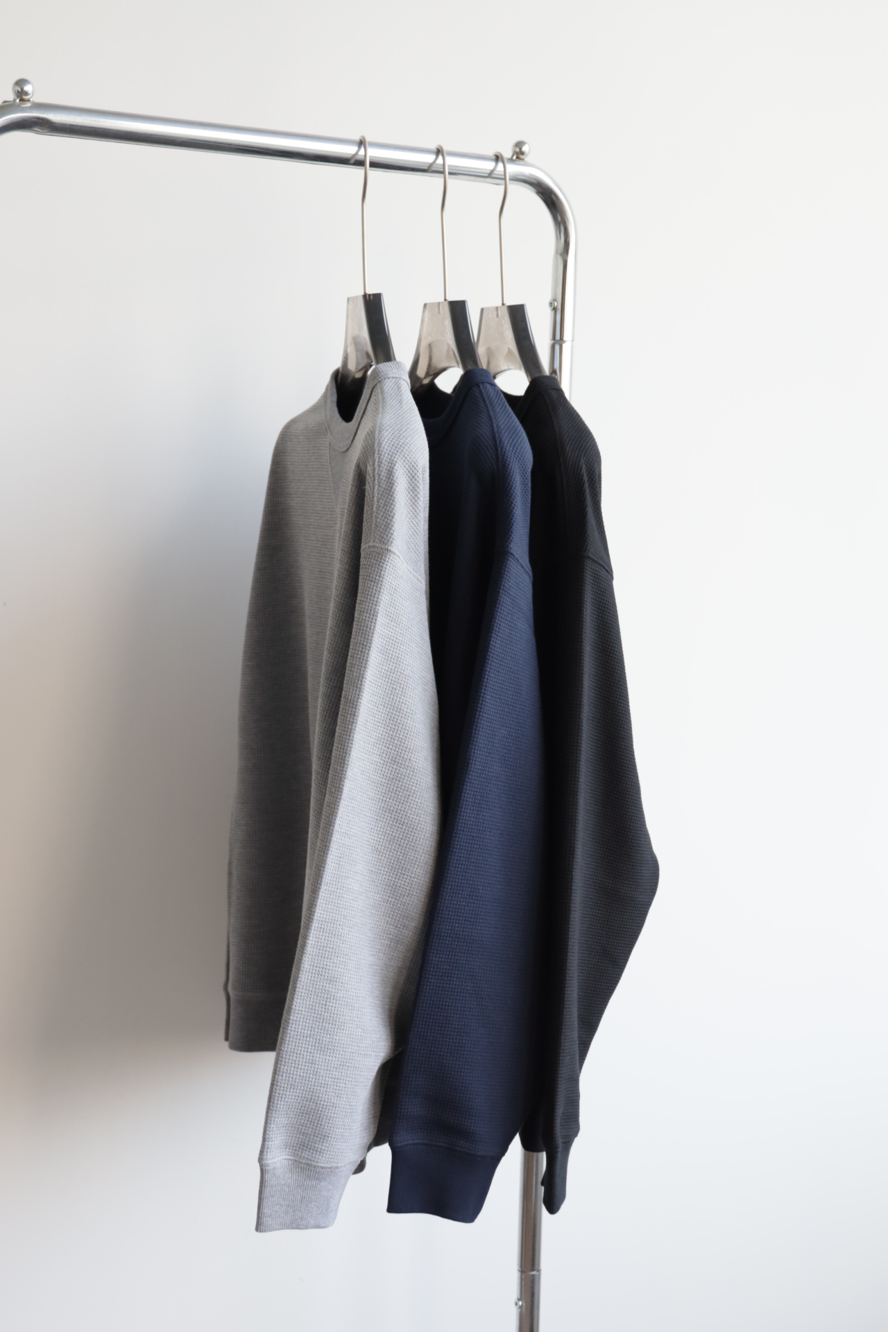 华夫格肌理织法脱颖而出,独特凹凸纹理提升整体质感,透气性与保暖性平衡。