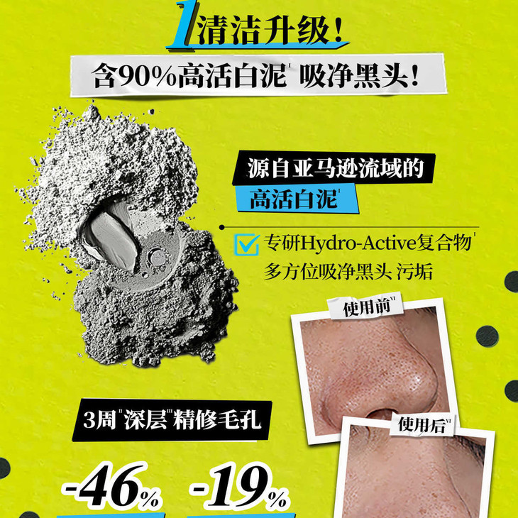 除了“吸净黑头”的强大效果,这次的升级版还加入了专研Hydro-Active复合物,可以多方位精修毛孔,帮助改善粗糙和暗沉,让皮肤状态更细腻柔滑。
