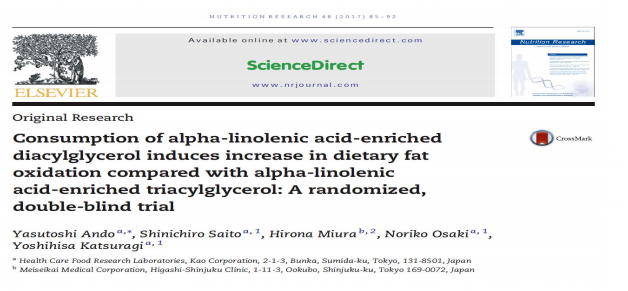 每个参与者被分配到一个为期4周的实验观察期中,每天摄入2.5g的富含α-亚麻酸的甘油二酯(ALA-DAG)或甘油三酯(ALA-TAG)。