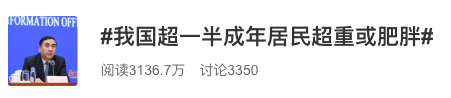 《中国居民营养与慢性病状况报告(2020年)》由国家卫生健康委组织中国疾病预防控制中心、国家心血管病中心等单位开展了历时4年的中国居民慢性病与营养监测,覆盖全国近6亿人口所形成的报告,报告中最为“刺眼”的是我国超重肥胖率飙升速度,成年居民超重率和肥胖率分别为34.3%和16.4%。