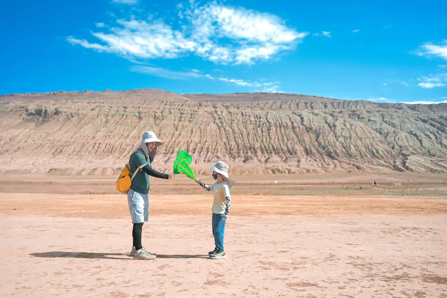 【上午】上午我们来到《西游记》中火焰山,进行一场撒野活动,感受大地的灼热。途中我们能够近距离触摸到火焰山山体、了解火焰山地质构造及葡萄沟、火焰山是如何形成的,半山腰还会路过老乡的晾房,还可以体验一把野外“沙疗”。成功登顶的小朋友可以收获一把铁扇公主的芭蕉扇,和一个“戈壁绿洲”奇特场景~
