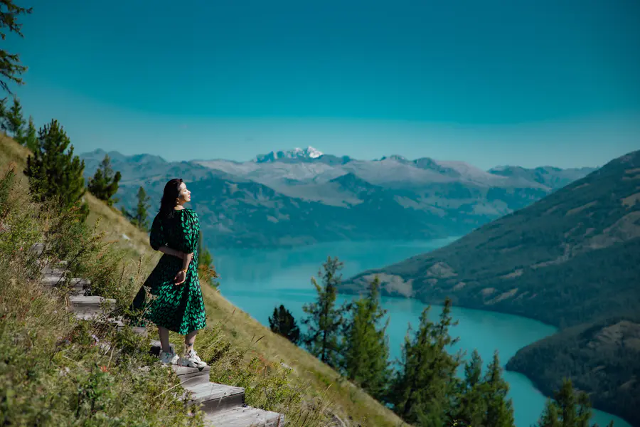 【下午】午休后乘坐观鱼台直通区间车后,徒步登上观鱼台的1068级台阶,收获一个绝美的喀纳斯湖全景。晚些时候离开喀纳斯,前往机场附近的酒店入住。