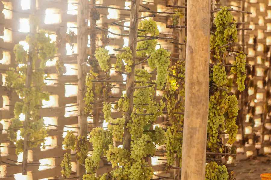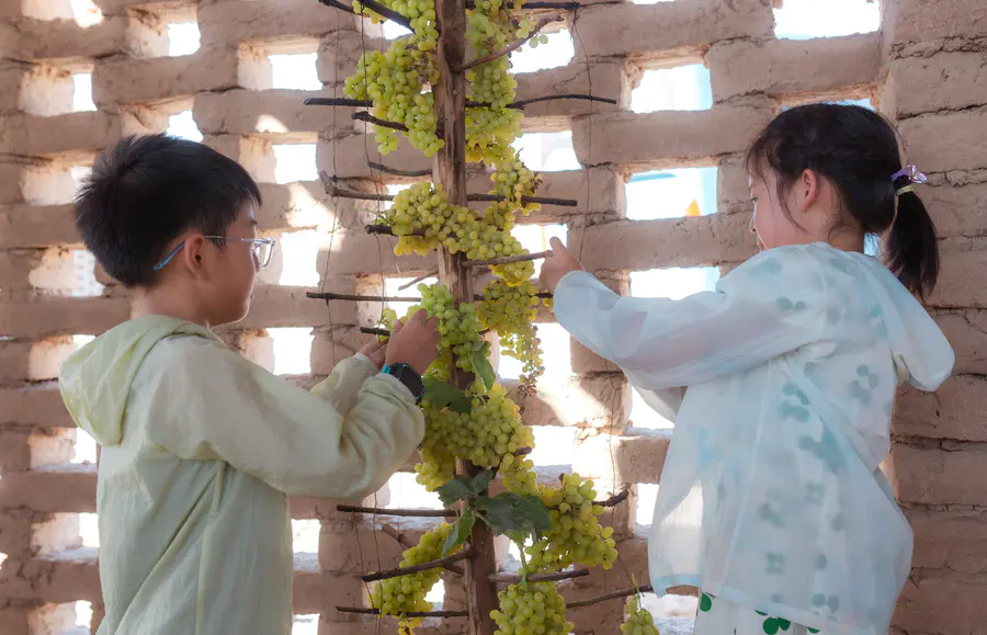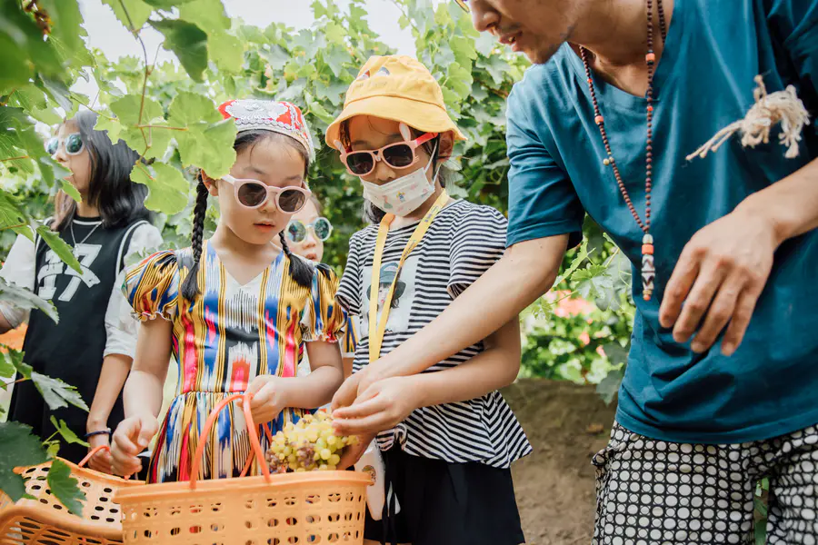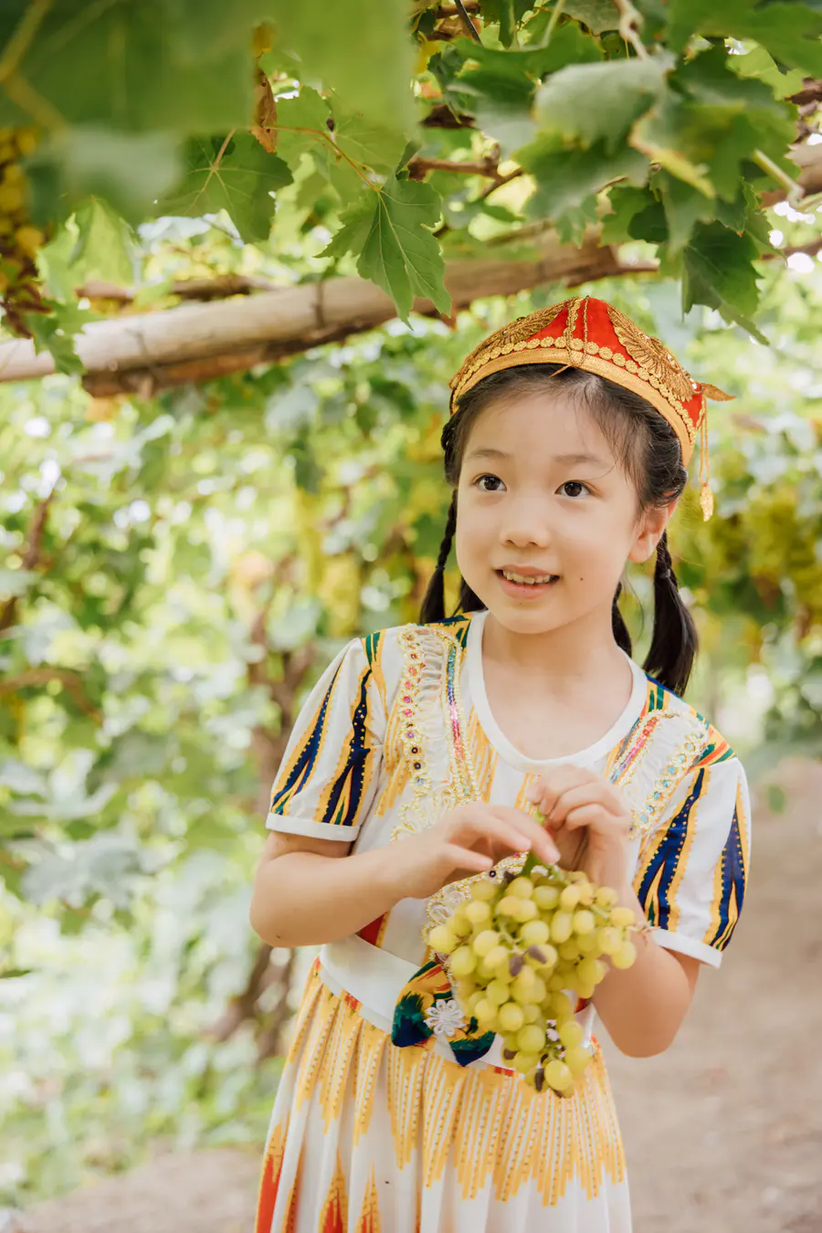 【下午】在课本上著名的葡萄沟,当地的游学老师带领孩子们穿梭于葡萄沟中心的青蛙巷,探访古民居、体验民俗民风,寻找千年古树、感受千百年来维吾尔族葡萄架下的生活场景,在这我们还将看到坎儿井在现代生活中的运用。接着孩子们去葡萄田里采摘葡萄,并把采摘的葡萄挂到晾房里,到了秋天,就能收到晾好的葡萄干啦~这里家长可以自由活动,在葡萄沟阴凉的民宿里喝个下午茶,品尝甜甜的葡萄和自酿的格瓦斯~