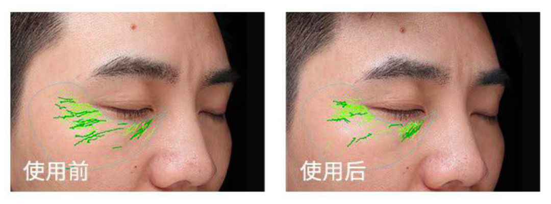 消费者经过28天的使用后,在VISIA镜头下可以看出显而易见的变化,眼周的皱纹得到明显改善: