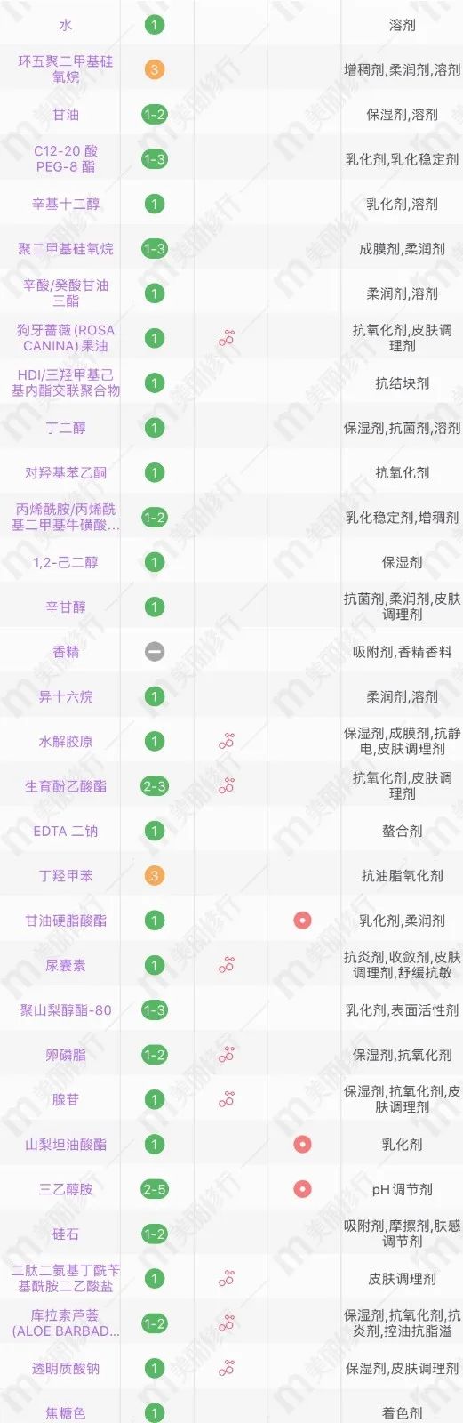 上下滑动查看成分表