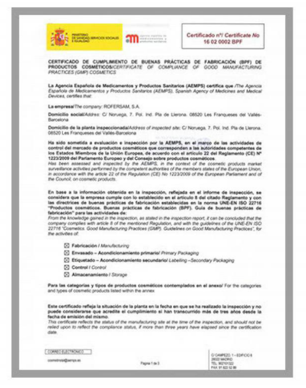 2007年,Rofersam实验室是第一个获得Ecocert认证的西班牙实验室,可以直接进入中国的有机市场绿色通道;