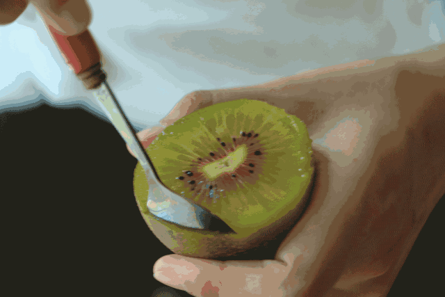 用牙签戳了一片,塞进嘴里。满口都是猕猴桃汁水的爽口甘甜。那滋味真让人回味无穷,一口接一口根本停不下来。