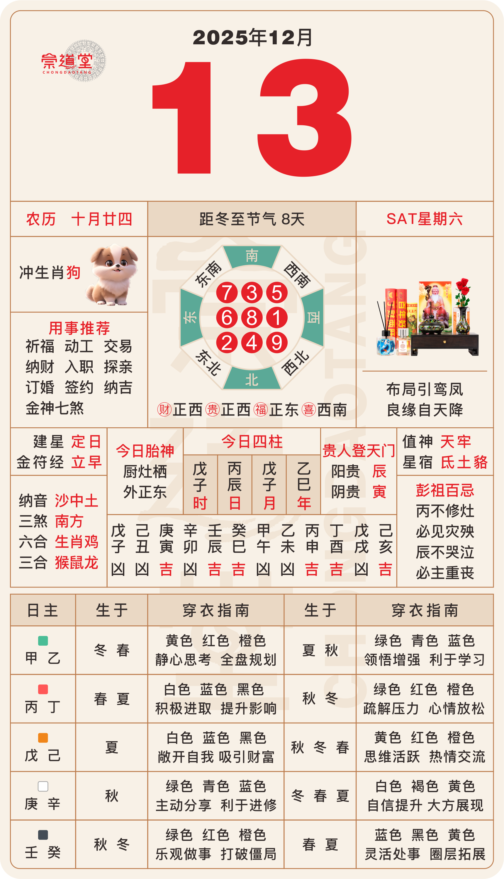 2025年12月13日 农历十月廿四 丙辰日 冲狗