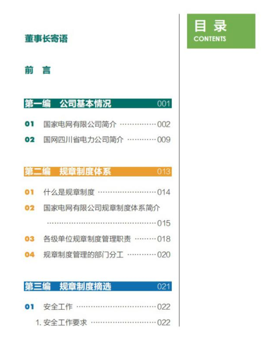 事莫明於有效,论莫定於有证。为真实掌握新员工制度学习需求,编写组通过调查问卷和现场调研梳理出编写原则和重点内容,历时15个月完成了《新员工应知应会制度手册》。本书逻辑严谨,排版简洁明了,清晰地介绍了国家电网公司规章制度的方方面面,并辅以图片帮助理解,增加了可读性。