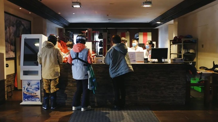 柏悦的储物区藏在屏风之后,私密性Max。区别于其他家色彩艳丽的铁皮柜子+木板凳,柏悦的储物柜更像精心设计的高级实木衣柜(其他地方储物柜60元/天,柏悦是唯一免费对住客开放的),皮沙发方便坐下穿脱鞋子。咨询处人较少,滑雪办理方便快捷。