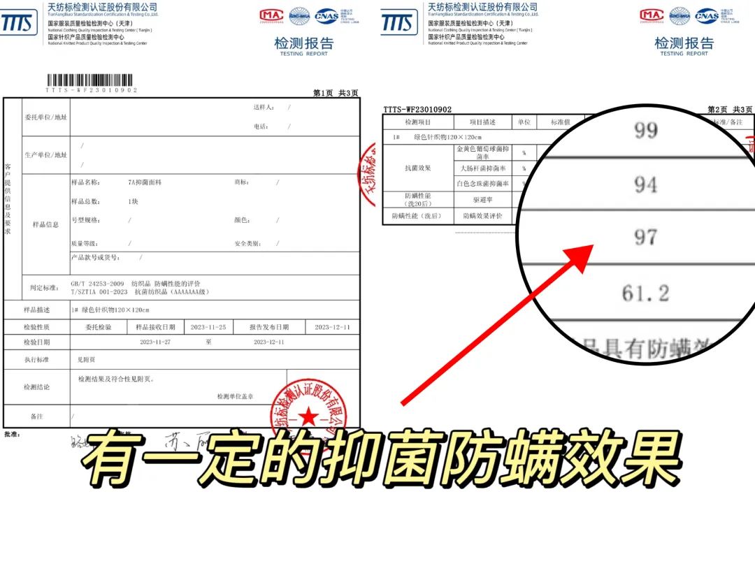 它还是7A级亢菌底档!可以在一定程度上减少细均滋生、预防螨虫!有检测报告可以证明⬇️