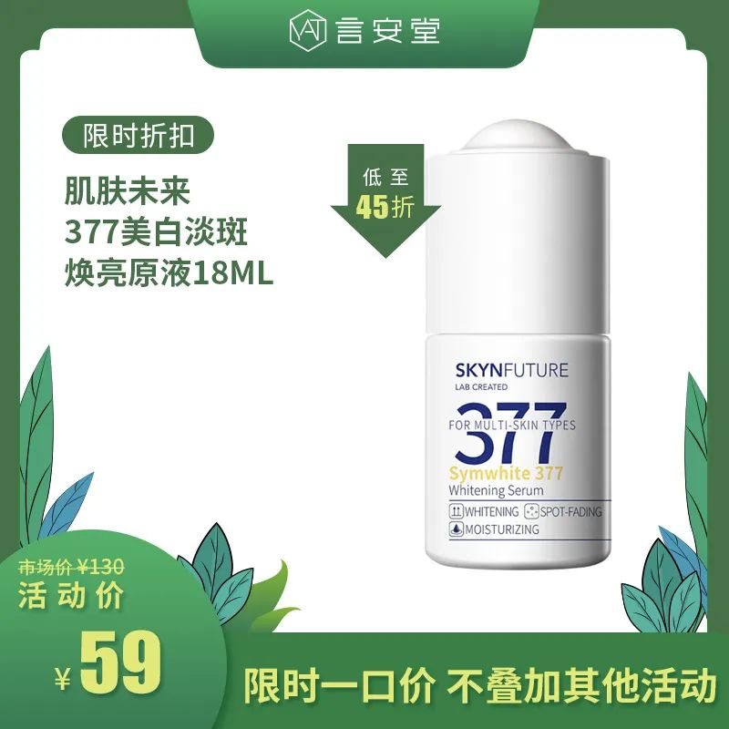 官方价130元,今日限时4.5折——只要59元, 就可以买到有证的377精华!想把美白变得更便宜更高效非它不可了!