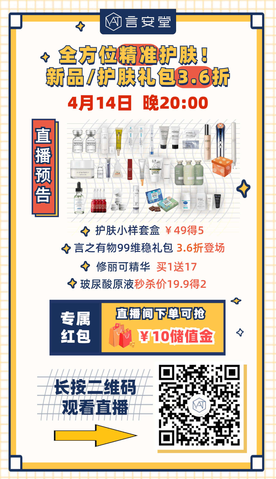 大家记得蹲点8点的言安堂直播间,这些产品直播间都有卖!达达老师详细帮你配好防晒抗老一条龙!