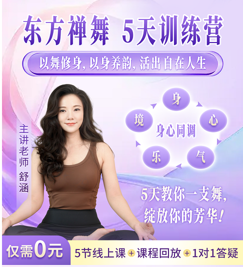 不管你是想要改善身体疲惫状态、改善身体体态(紧致塑性、美背美肩、瘦腰塑臀)、改变皮肤状态、还是想要丰富业余生活、提升精气神,亦或是对东方禅舞(气韵养生舞)轻运动舞蹈感兴趣,哪怕是0基础也没关系,赶快扫码抢名额,加群在家就能免费听课练习!