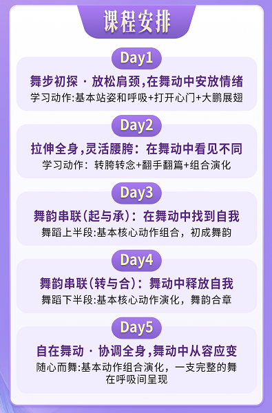 群内有免费的东方禅舞(又名气韵养身舞)(松息立韵提精神气、舒缓肩颈健身体、起舞身心安气血足、放松情绪好心情)5天直播课程;