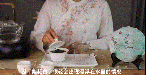 需要注意的是:因《梨花白》很轻会出现漂浮在水面的情况,此时可用盖碗盖子轻轻压下去,加上它没有经过揉捻的制茶工序,茶滋味溢出会较慢一些,可稍加闷泡5-10秒再出汤。
